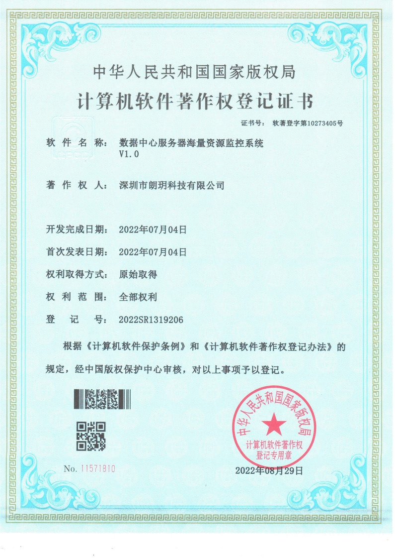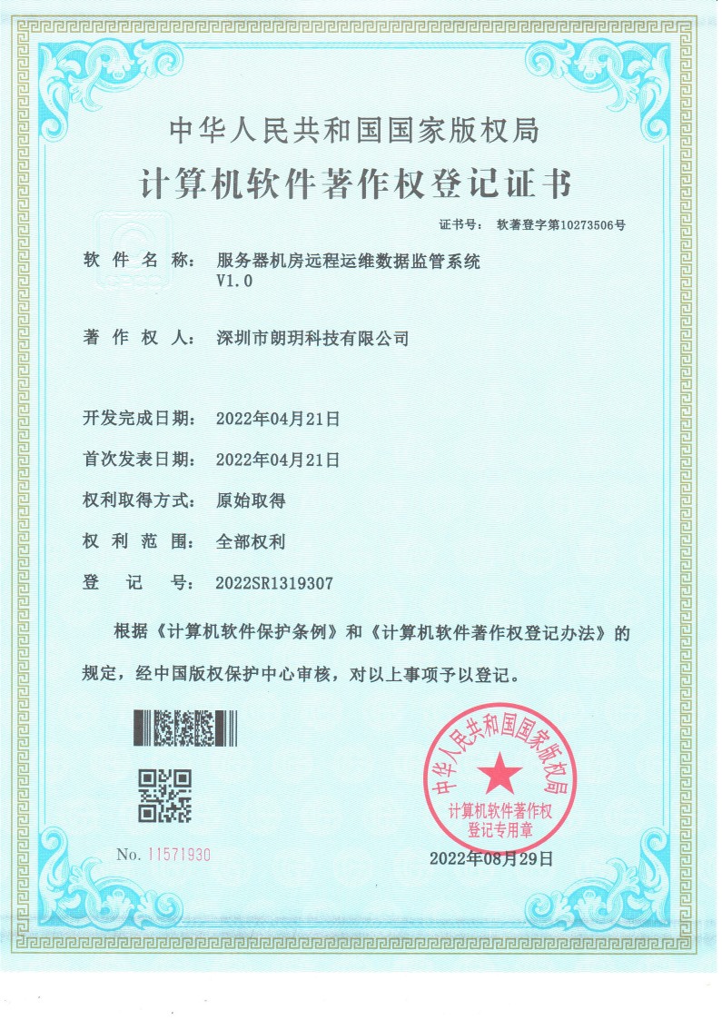 11荣获“智能网络服务器监控管理系统”计算机软件著作权登记证书