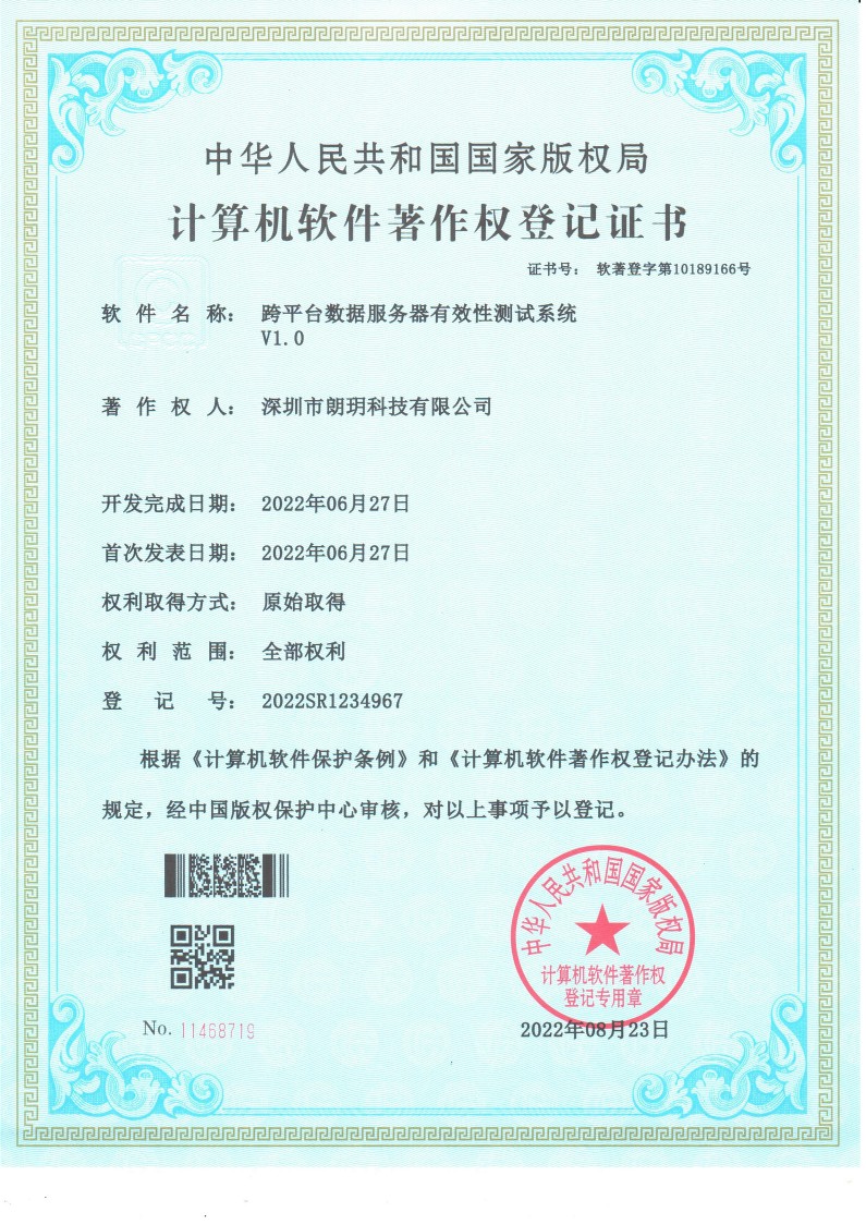 朗?科技一举通过国家双软认证,通过了由国家信息产业部、信息产业厅、深圳科技工贸和信息化委员会的软件企业认定;(证书编号:深R-2011-0254),同时成功荣获软件产品登记证书(证书编号:深DGY-2011-1268)。