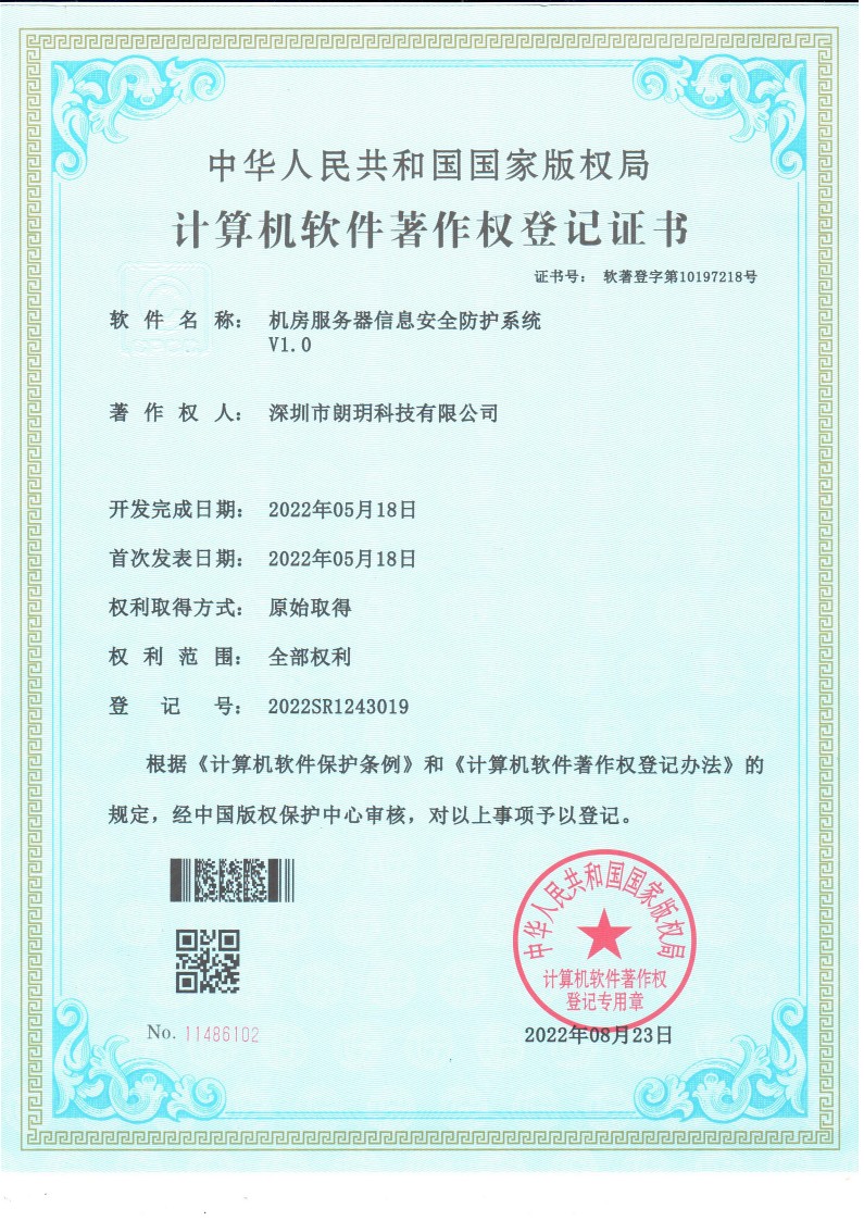 02荣获《服务器安全智能防护管理系统》计算机软件著作权登记证书