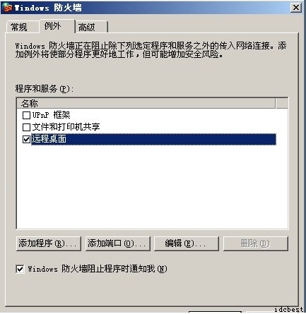 开启防火墙后,没有在例外上把 “远程桌面”的勾打上的话,同样得远程端口将会被防火墙屏掉,导致无法远程。 4. Tcp/Ip筛选器 如果启用tcp/ip筛选,没有正确设置的话同样不能远程,例如没有把远程端口添加进去